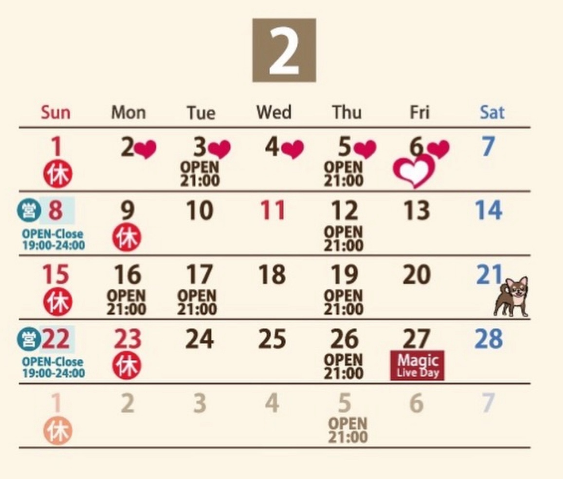 Top Live Barの営業カレンダーです。